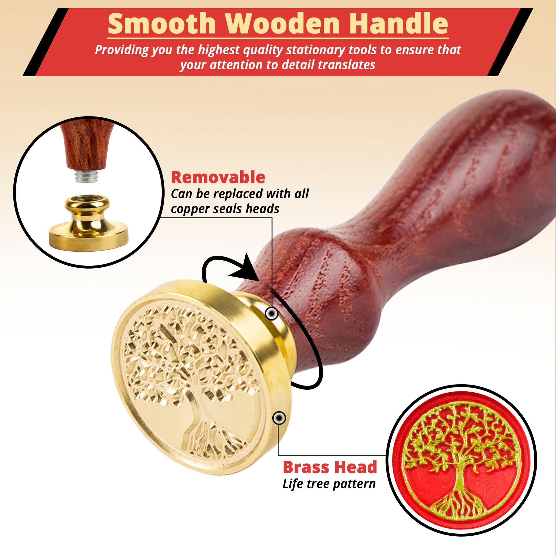 Wax Stamp: Material: brass stamp with wooden handle Stamp Sizes: 1 inch Length: 3 1/2 inches Pattern: tree of life